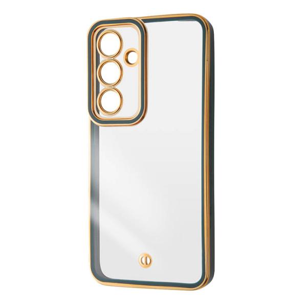 ■GalaxyS24 ケース クリア グリーン ゴールド メタリック フレーム 透明 耐衝撃 無地 カメラ 保護 カバー ソフト TPU