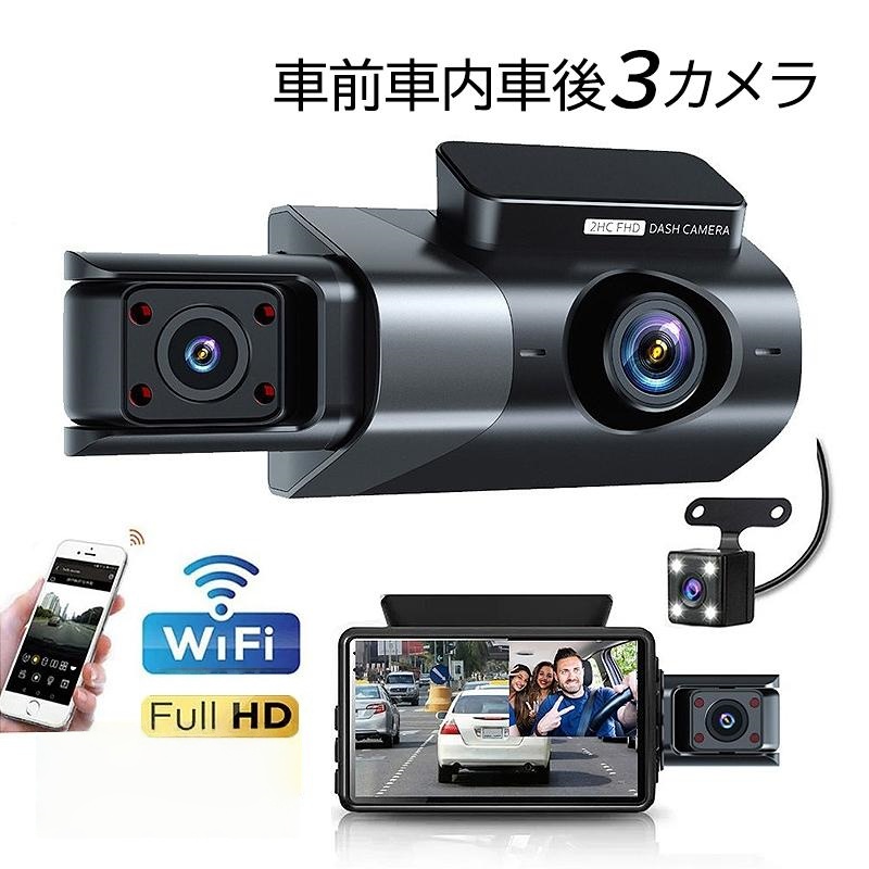 ドライブレコーダー 前後 車内 3カメラ タッチパネル 日本語 車載カメラ 防犯監視 事故記録カメラ あおり運転対策
