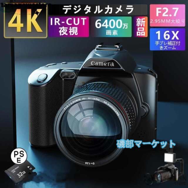 ■【SDカード:64GB付】 期?限定 カメラ デジタルカメラ デジカメ 安い 新品 ビデオカメラ 4K 6400万画素 IRナイトビジョン 16倍ズーム 電
