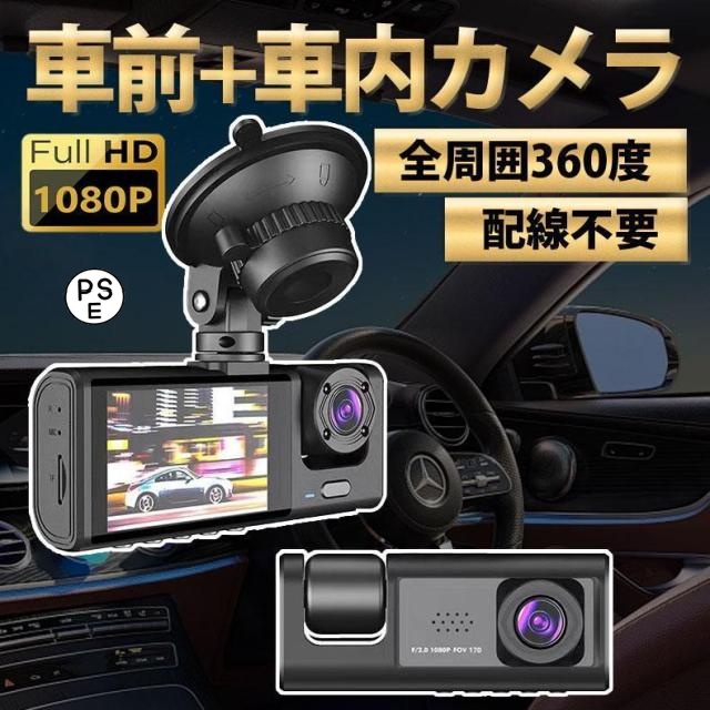 ■ドライブレコーダー ドラレコ 2カメラ 配線不要 HD1080P 200万画素 フルHD 前170°車内120° 広範囲 ループ録画