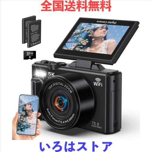 Beho 5K録画 デジタルカメラ スマホに送れる デジカメ 7500万画素 Wi-Fi機能 180度回転可能ディスプレイ 18倍デジタルズーム オートフォ