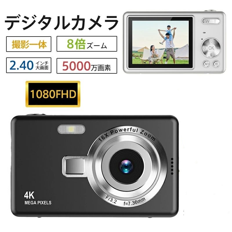 ■デジタルカメラ 1080FHD 5000万画素 8倍ズーム IPS大画面 防塵 軽量 初心者 手振れ補正 オートフォーカス 定常光ライト 自撮り 動画 撮影