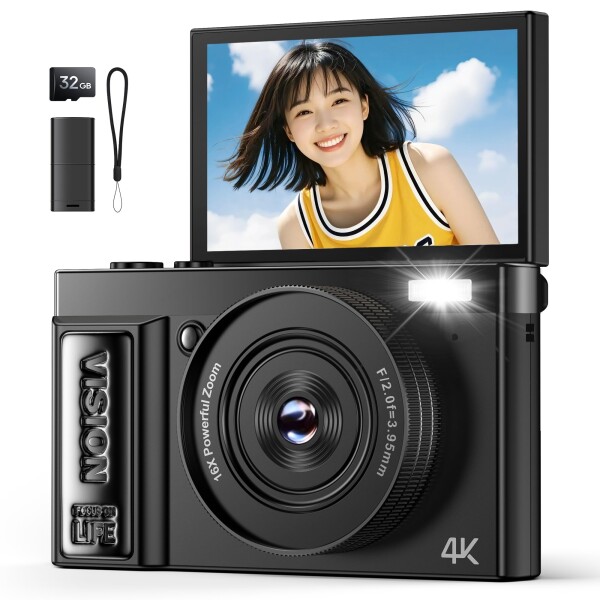■デジカメ AEKOMi 4K動画撮影 64MP画素 フリップ デジタルカメラ AFオートフォーカス コンパクトカメラ 16Xデジタルズーム 手振れ補正 3.0