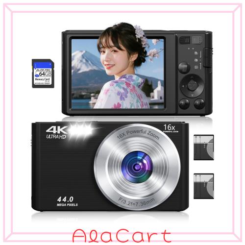 ■デジカメ 4K 4400万画素 デジタルカメラ AFオートフォーカス 16Xデジタルズーム 2.8インチ IPSスクリーン 充電 YouTubeカメラ コンパクト