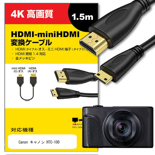HDMI-mini HDMI 変換ケーブル 1.4規格 1.5m Canon キャノン HTC-100 対応 通信ケーブル デジタルカメラ 液晶テレビ スキャナー