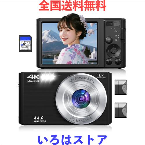 ◆商品名:デジカメ 4K 4400万画素 デジタルカメラ AFオートフォーカス 16Xデジタルズーム 2.8インチ IPSスクリーン 充電 You Tubeカメラ コンパクト