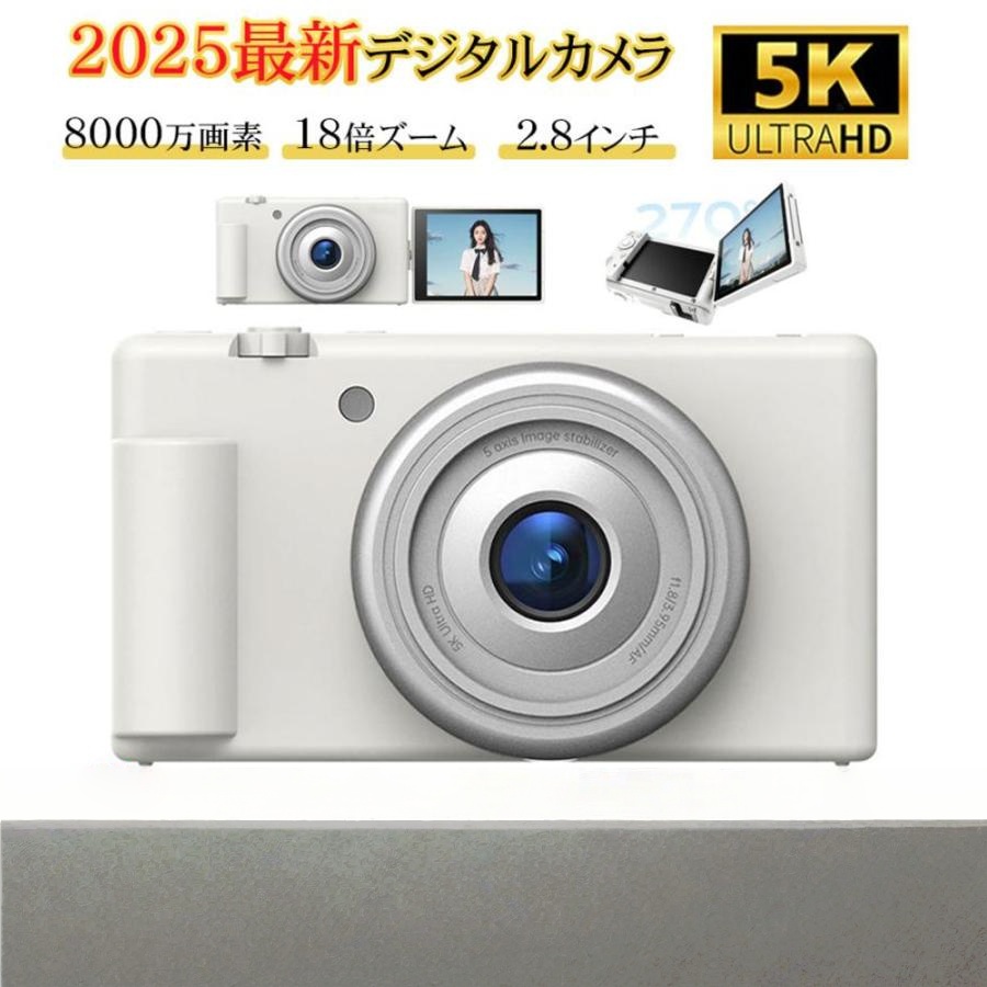 ■【5K新発売】正規品 デジカメ デジタルカメラ 5K 8000万画素 動画撮影 2.8インチ 18倍ズーム 270度回転可能 コンパクト ビデオカメラ Vlo