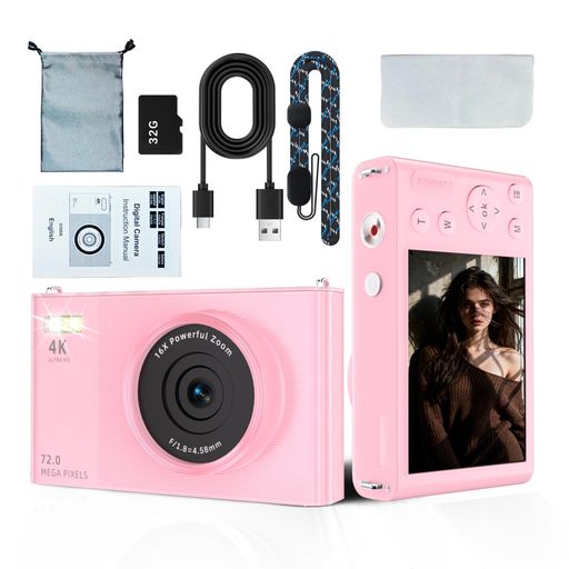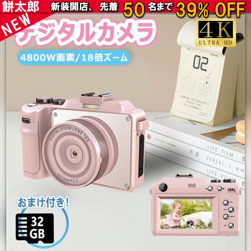 ■FSJUNデジカメ 【4K動画撮影、7200万画素】デジタルカメラ 32GB SDカード付き TYPE-C高速伝送/充電 AFオートフォーカス コンパクトカメラ