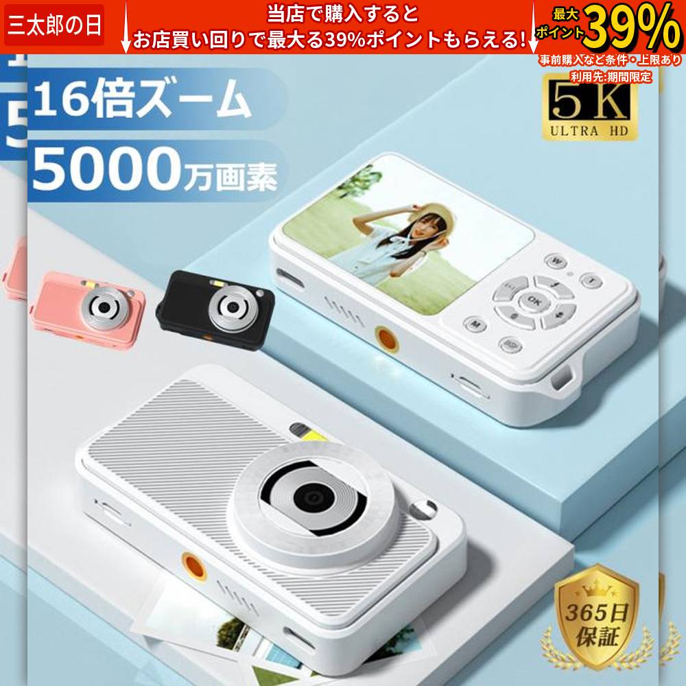 デジタルカメラ デジカメ 5000万画素 2.4インチIPS画面 4K 1080P動画撮影 16倍デジタルズーム オートフォーカス AF機能 HDカメラ 手ブレ補正 携帯便利 USB C充電 専門家 コンパクト デジタルカメラ ブラック ホワイト 初心者 誕生日