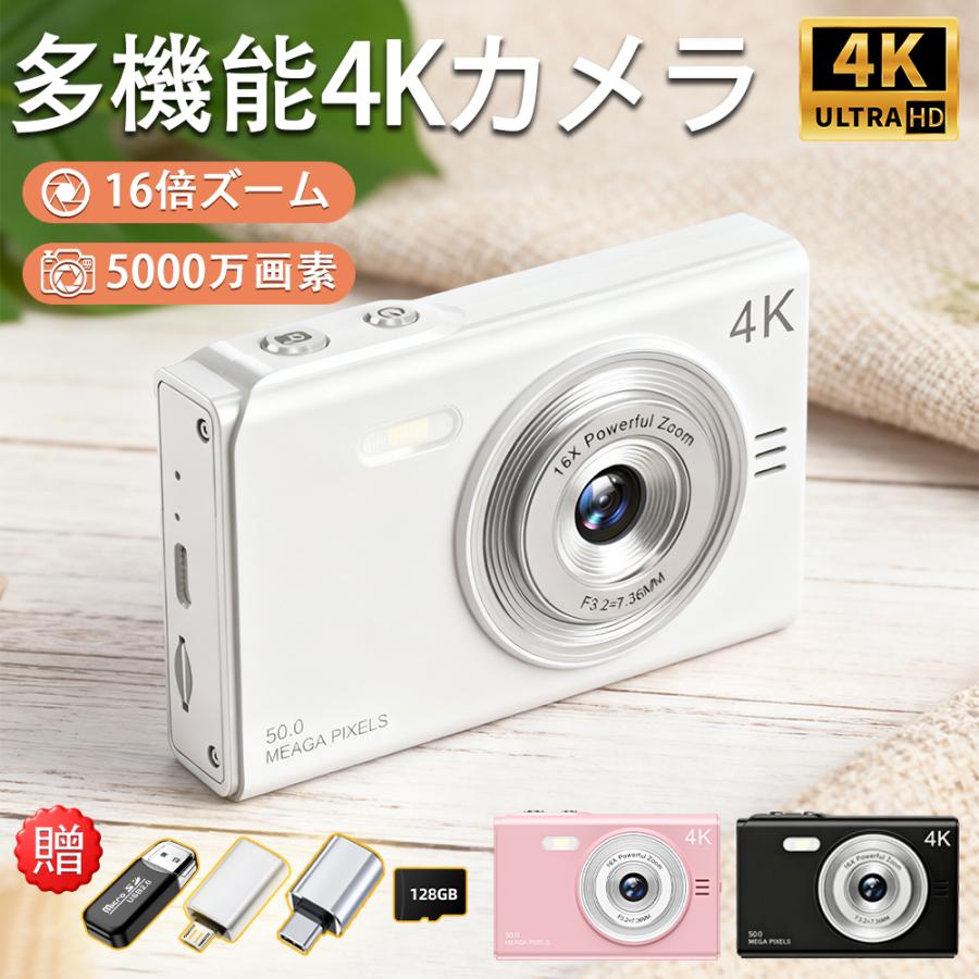 ■最新発売 デジカメ 4K デジタルカメラ 日本製チップ 128GB SDカード付き 16倍ズーム 5000万画素 オートフォーカス ウェブカメラ コンパク