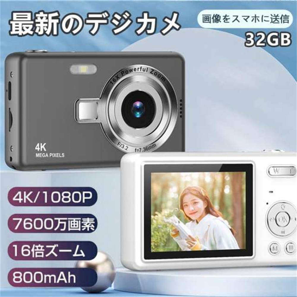 ■【クーポン対象 お買い得】デジカメ デジタルカメラ 4K 7600万画素 16倍ズーム 高画質 オートフォーカス ウェブカメラ機能 手振れ補正 IP