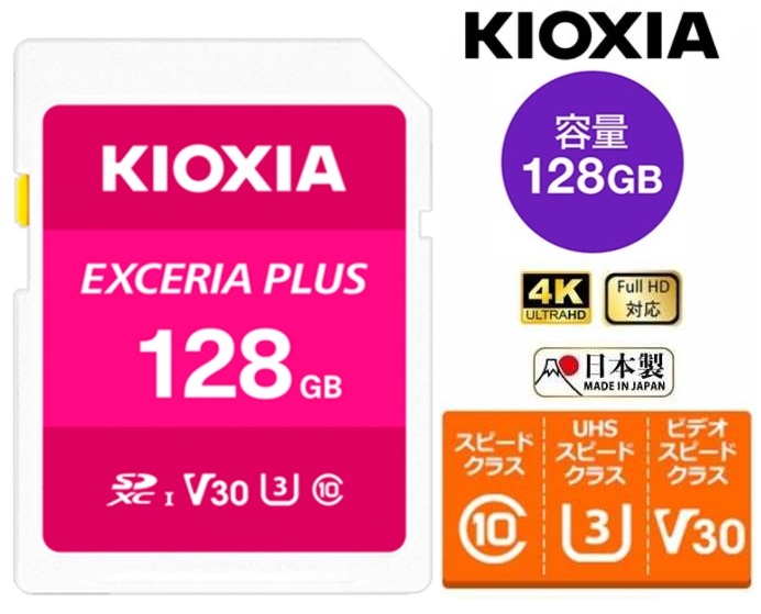 ■キオクシア SDHCカード 128GB Class10 UHS-I U3 V30対応 SDHCメモリカード KSDH-A128G 最大読込100MB/s 最大書込65MB/s 日本製 4K録画向