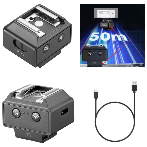 ■ZENIKO T1 ミニフラッシュトリガー 3イン1 ワイヤレスフラッシュトリガーとレシーバーセット フラッシュ高さ調整器として使用可能 (Ricoh
