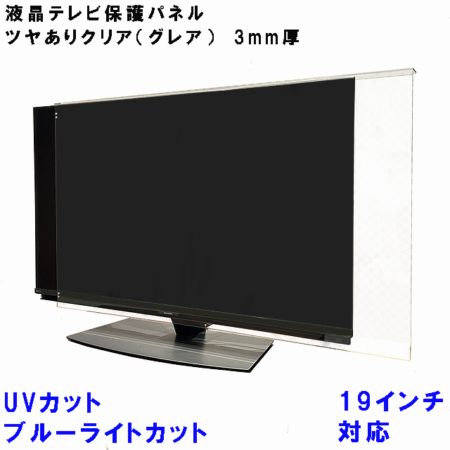 ■UV・ブルーライトカット 液晶テレビ 保護 パネル 19型 19インチ相当 グレア調 板厚3mm コードストッパー付属 テレビカバー テレビガード