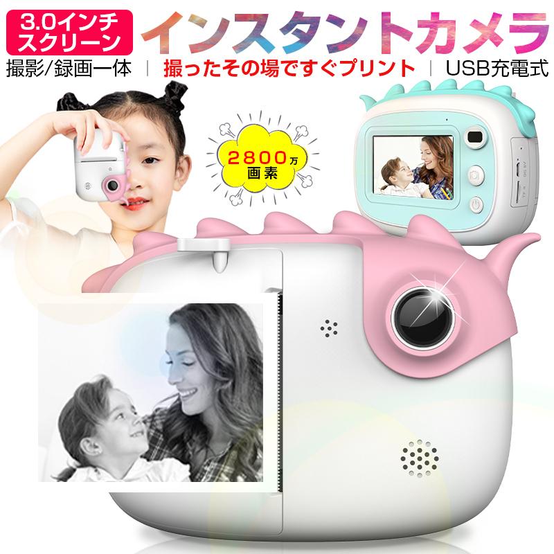インスタントカメラ キッズカメラ 子供カメラ 即プリント 2800万画素 3インチ画面 高解像度 プリクラ 写真 録画 自撮り USB充電式