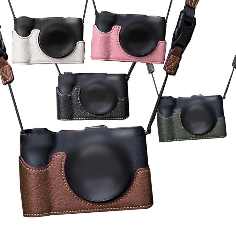 ■PowerShot V1 ケース PUレザーハーフケース ハーフカバー 保護ケース シンプル ストラップ 肩掛けベルト付き 傷つき防止 カバー カメラ保