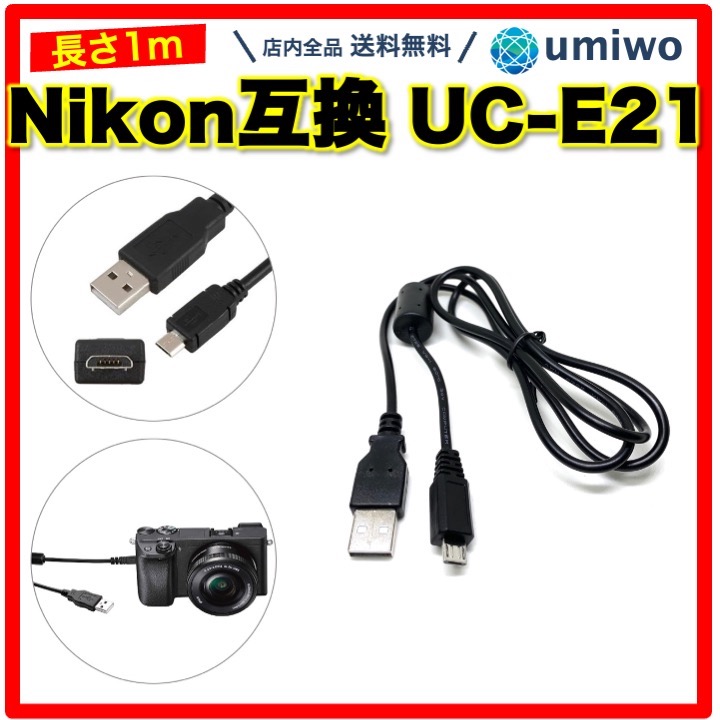 ■Nikon 互換 ケーブル 1m ニコン UC-E21 インターフェースケーブル microUSB 充電 デジカメ データ転送 USBケーブル coolpix クールピクス