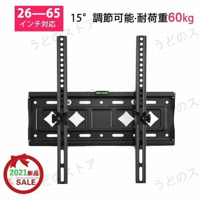 【商品特徴】テレビ 壁掛け 金具 26-65インチ対応 壁掛けテレビ 上下角度調節 耐荷重60kg 汎用タイプ 4Kテレビ ゲーミングモニター PCモニターも壁掛け【対応テレビ】この壁掛け金具は重量60kg以内で、適用なVESA規格横:200〜400、縦:100〜400の範囲で、26〜65インチまでのテレビに対応しています。【角度調節機能】上下15度調整可能です。最適な角度で調整し、いろんな視角から観賞を楽しめます。【取付簡単】取付は簡単です。必要な部品は揃っています。日本語取扱説明書はございません。【耐荷重60kg】テレビ掛け金具は高品質の冷間圧延鋼で作られ、丈夫で耐震性もあり、耐荷重は60kgまでとなります。テレビが倒れるや割れる心配がなく安心です。