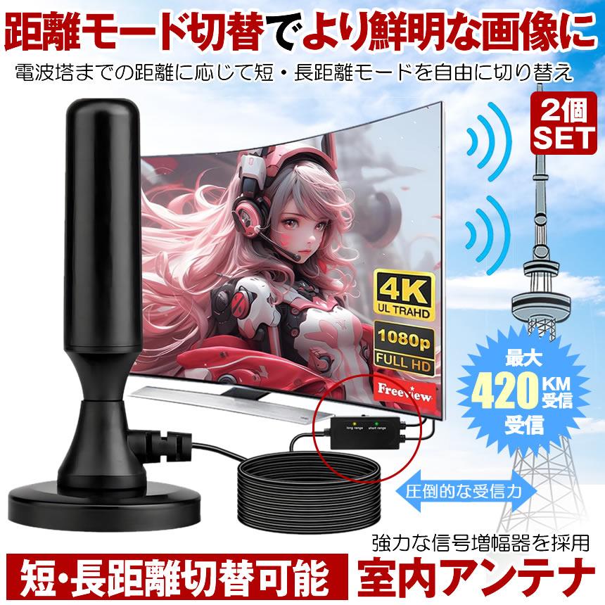 ■2個セット 室内アンテナ テレビ TV 最強 テレビアンテナ 地デジアンテナ 地デジ 信号 ブースター内蔵 4K HD TV 420KM受信 360度全方位受