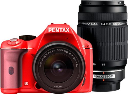 ■PENTAX デジタル一眼レフカメラ K-x ダブルズームキット レッド/ピンク 023(中古品)