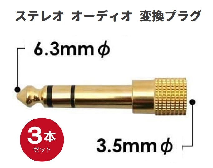 ■変換 アダプタ 標準プラグ ⇒ ミニプラグ 6.35mmオス - 3.5mm オーディオ 金メッキ コネクタ 3本