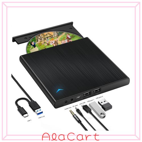 ◆商品名:Yisjek 外付け CD DVD ドライブ USB 3.0 タイプ C CD DVD プレーヤー オーディオ/USB ポート/電源ケーブル付き DVD ドライブ 外付け 読み