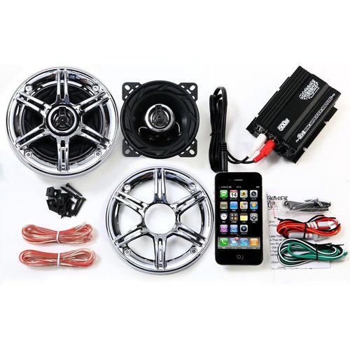 バイク用 バイク 爆音 オーディオ 10cm 10センチ 4インチ スピーカー スピーカーグリル 300W スポーク メッキ グリル 防水 小型 アンプ 2チャンネル 300W USB 充電 ビックスクーター マグザム マジェスティ125 アドレスv125g 原付 ディオ ジョグ pcx125 フュージョン スカイウェーブ i Phone スマホ 対応 音楽