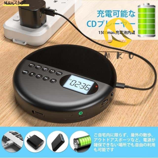 ■CDプレーヤー 高音質 ポータブルCDプレーヤー1500mAh 再生スピード調節 受信/送信 CDプレイヤー USBメモり対応 AUX機能 CDウォークマン P