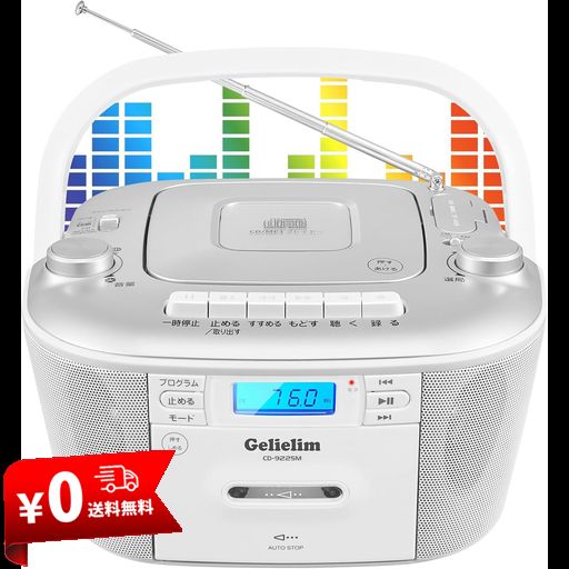 ■GELIELIM CDプレーヤー CDラジカセ AM/FMラジオ AUX/USB/MP3/SD/CDカセット対応 ステレオスピーカー内蔵 カセットテープ再生/録音 AC/DC
