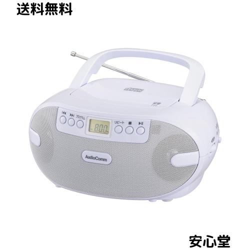 ■オーム電機AudioComm CDラジオ CDプレーヤー ポータブル コンパクト ステレオ コンセント 電池式 ホワイト 英会話 語学学習 英検対策 リ