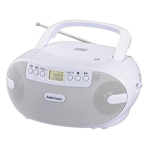 ■【送料無料】オーム電機AudioComm CDラジオ CDプレーヤー ポータブル コンパクト ステレオ ACコンセント 電池式 ホワイト 英