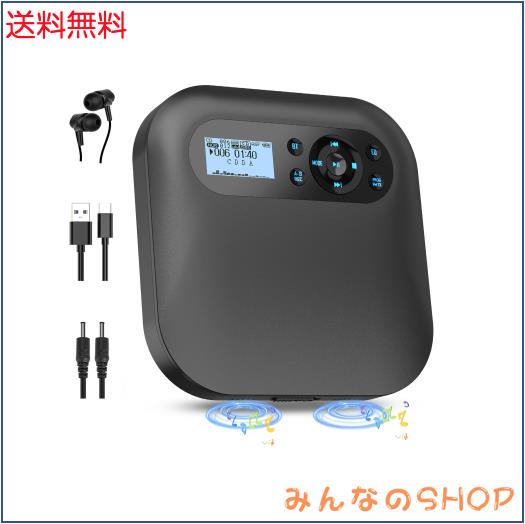 ■CDプレーヤー Bluetooth5.2対応スピーカー内蔵CDプレーヤーFMトランスミッター内蔵 ・(REC)録音機能付き ポータブルCDプレーヤー2000mAh