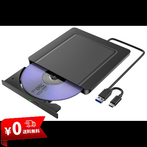 ■CD DVDドライブ 外付け 【1.3CM超薄、USB3.0 & TYPE-C両接続 】 ドライバ不要 静音 読取/書込可 CDプレーヤー バスパワー駆動 外付けCDドラ