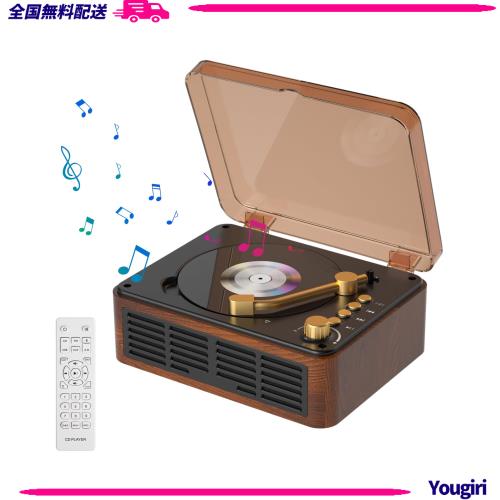 ■Gueray CDプレーヤー Bluetooth5.0 受信&送信 レトロ ステレオスピーカー内蔵 CDプレイヤー CDラジカセ 卓上置き 一機多用 USB/FM/AUX A