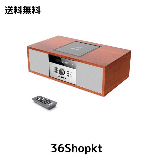 ■ミニコンポ・セットコンポ CDプレーヤー レトロ/Bluetooth/FMステレオ/USB MP3再生/AUX入力、ヘッドフォンジャック、家庭用コンパクトONE