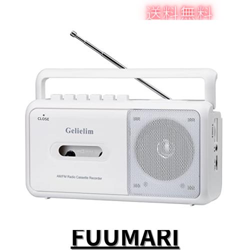 ■Gelielim ラジカセ FM/AM/ワイドFM対応 カセットテープ再生/録音 ポータブルカセットプレーヤー AC100V/乾電池仕様 ホワイト