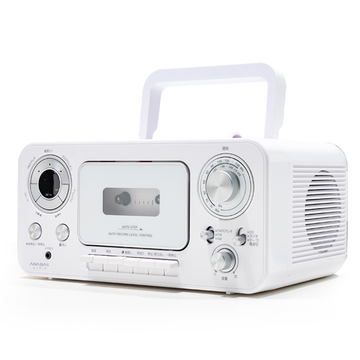 ■アナバス CDラジカセ CDラジオカセットレコーダー ANABAS audio 2電源対応 AC100V 乾電池対応 CD-C330-W ホワイト CDラジオ CDプレーヤー