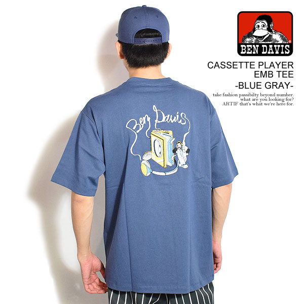 ■BEN DAVIS ベンデイビス CASSETTE PLAYER EMB TEE -BLUE GRAY- メンズ Tシャツ 半袖Tシャツ オーバーサイズ atftps