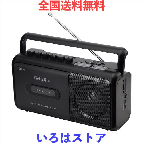 ■Gelielim ラジカセ 録音再生 カセットデッキ AM/FM/ワイドFM対応 カセットテープ 乾電池/コンセント式 ハンドル付 日本語取扱説明書 ブラ