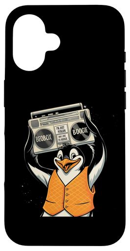 ■IPHONE 16 楽しいペンギン ラジカセ 音楽愛好家 レトロダンスデザイン スマホケース