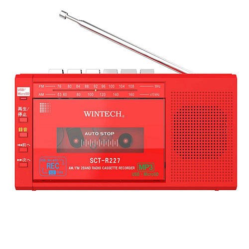 ■WINTECH MicroSD/USB録音対応モノラルラジカセ デジタル録音対応 レッド SCT-R227RZ(1個)[ラジカセ]