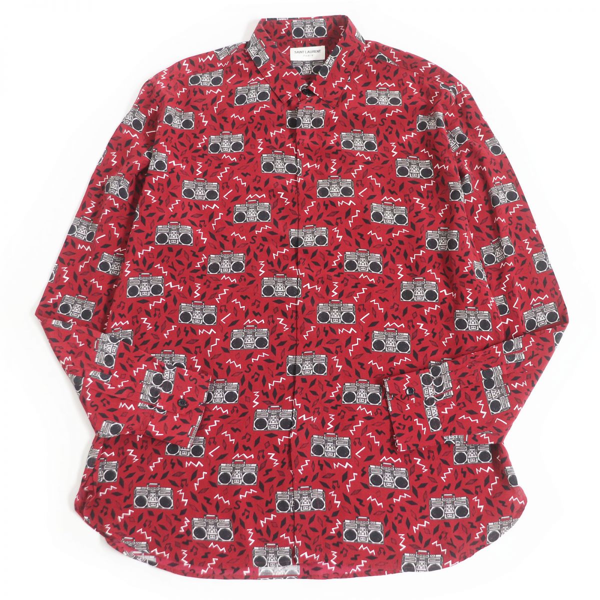 ■美品□2019年製 SAINT LAURENT PARIS/サンローランパリ 564172 ラジカセ シルク100% ロングスリーブ 長袖 柄シャツ レッド 41 伊製 正規