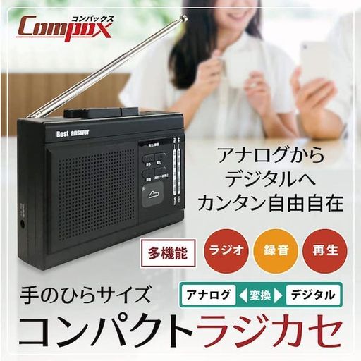 ■ベストアンサー COMPAX 多機能 コンパクト ラジカセ AM FM ラジオ カセットテープ MICROSD マイク 録音 USB 乾電池 2WAY仕様のため持ち運