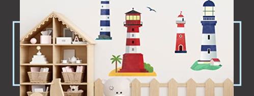 ■AnFigure 灯台ウォールステッカー リビングルーム ベッドルーム バスルーム ウォールステッカー テレビ 3D DIY 航海ヨット ビーチボート