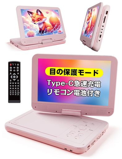 ■キッズ ポータブルDVDプレーヤー 10.1インチ 車載 270度回転 TV同期可能 簡単操作 子供 リモコン ゲームコントローラ付き 旅行 長旅 語学