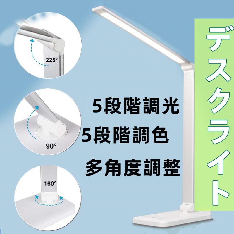 ■即日発送 デスクライト LED 電気スタンド 目に優しい 卓上ライト タッチセンサー5段階調光調色 多角度調整 USBポート付け