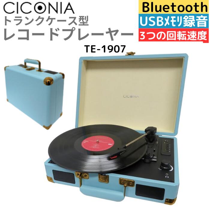 ■CICONIA レコードプレーヤー TE-1907 レトロ クラシカル ライトブルー USBメモリー 多機能 SDカード 再生 ブルートゥース Bluetooth 送