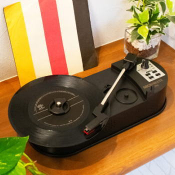 どこでも使えるスピーカー内蔵のコンパクトなレコードプレーヤー!USB給電と乾電池の2WAY電源だから場所を選ばずどこでもご使用頂けます。またレコードの音をUSBメモリ/micro SDカードにデジタル録音する事も可能。操作性も極めてシンプルなためレコードに初めて興味を持った方の入門機やレコード好きの方のサブ機としてもオススメ。レコードのある暮らしを手軽に始めてみませんか。■電源[USB-C]DC 5V 1A[乾電池]単3形×4個使用■消費電力3W■外形寸法約幅292×奥122×高77mm■質量約620g■出力端子[ヘッドホン]3.5mmステレオミニ■内蔵スピーカー[インピーダンス]8Ω[実用最大出力]1W[ユニットサイズ]直径36mm[周波数特性]F0-13k Hz[再生方式]モノラル■本体色:ブラック■セット内容:本体、USBケーブル(USB-A to USB-C)、45回転レコード用アダプタ、取扱説明書■生産国:中国※レコード、パソコン、ACアダプター、モバイルバッテリー、乾電池、USBメモリ、micro SDカードは付属していません。