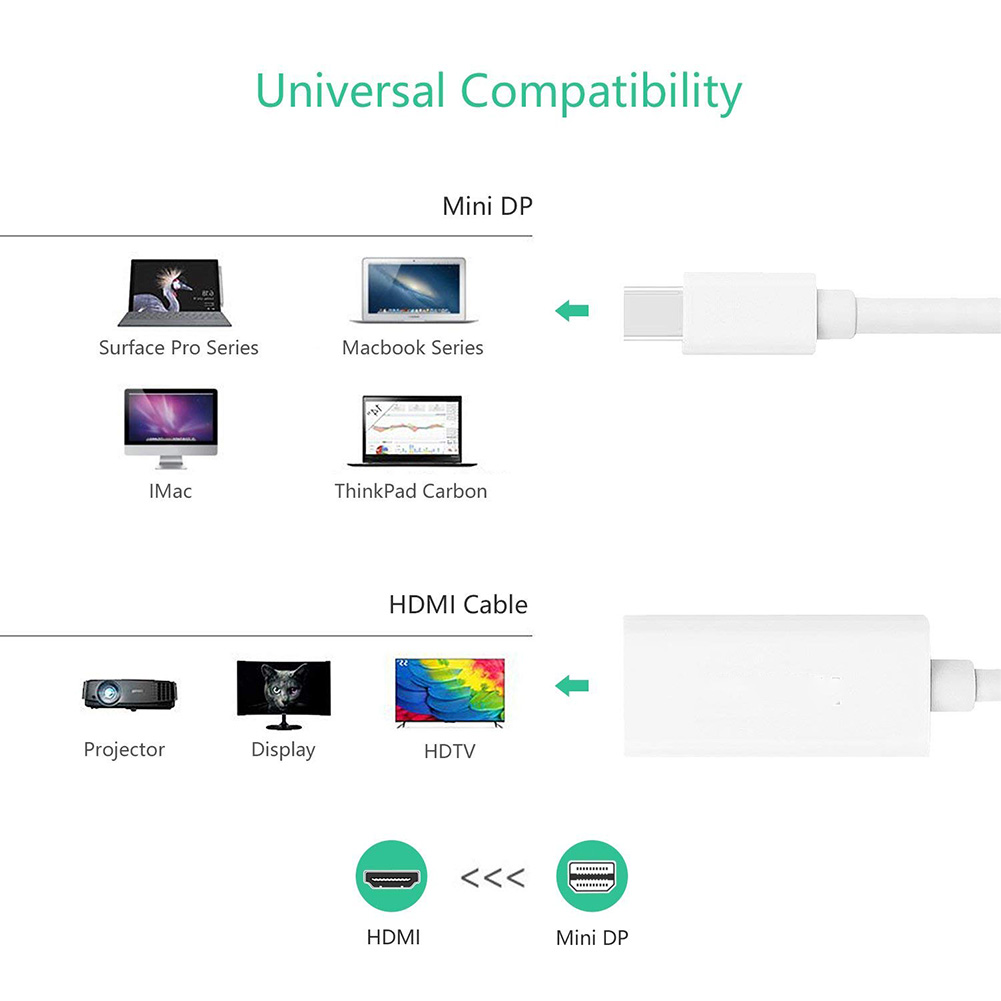 - Mini Display Port DP(Thunderboltポート)からHDMIアダプタ、ミラーおよび拡張モード、Mac Book Air、Mac Book用。 - Mini Display Port / Thunderbolt Port互換のPCまたはグラフィックカードをHDTVに接続するように設計されています。 - Mini Displayport to HDMI Converterは、平均的な製品よりも優れたチップソリューションを使用して、瞬時かつ安定した伝送を保証します。 - HDMI搭載のテレビ、モニター、またはコンピュータをAppleデバイスのMini Display Portリンクに接続します。