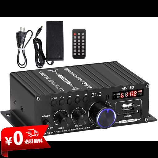 ■アンプ 40W X 2チャンネル BLUETOOTH5.0 パワーアンプ USB/SDカード再生可HI-FI 高低音 ステレオ オーディオアンプ ベ リモコン付き(12V
